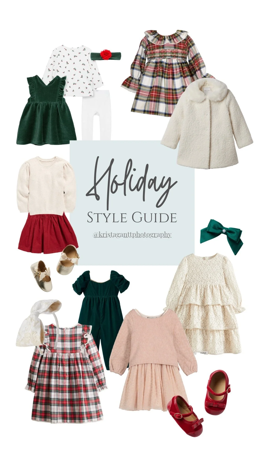 The question of the month is what do I wear for my photos? My clients are asking and I thought I would help a sister out and update my holiday style guide for you! These timeless outfits are perfect to help you plan for your Santa Session, and there are even some pajama selections. If you are looking to coordinate closely with Santa’s custom red suit, it’s shown on page 2. 🎅🏻